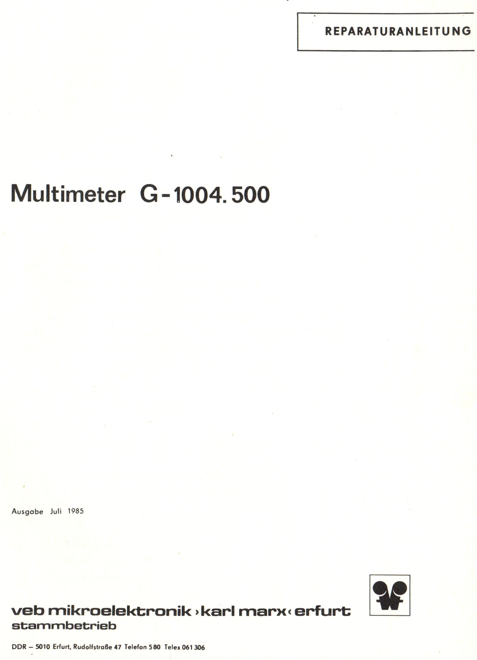 RFT G 1004.500 Digital-Multimeter Service-Unterlagen