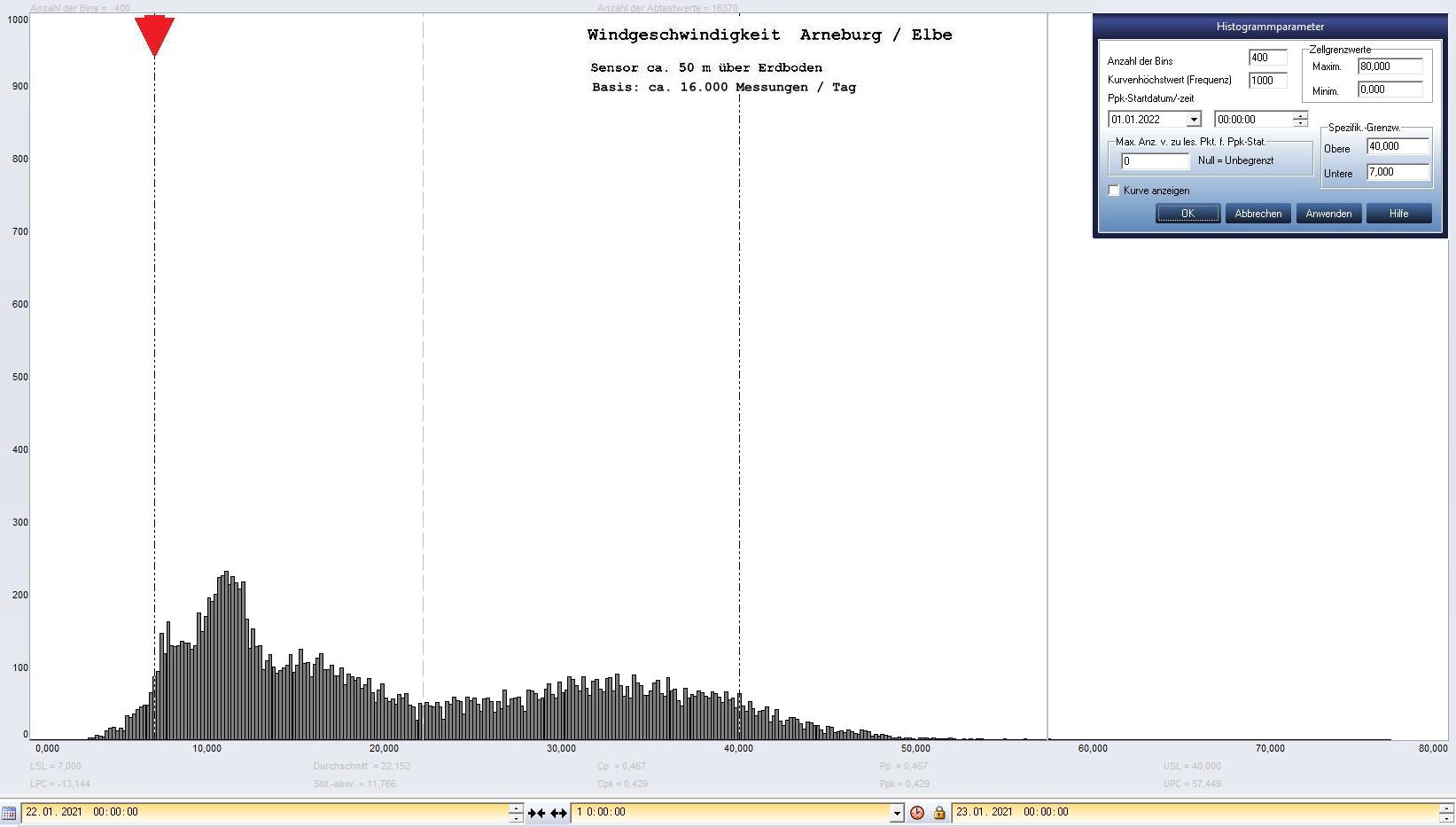 Arneburg Tages-Histogramm Winddaten, 22.01.2021