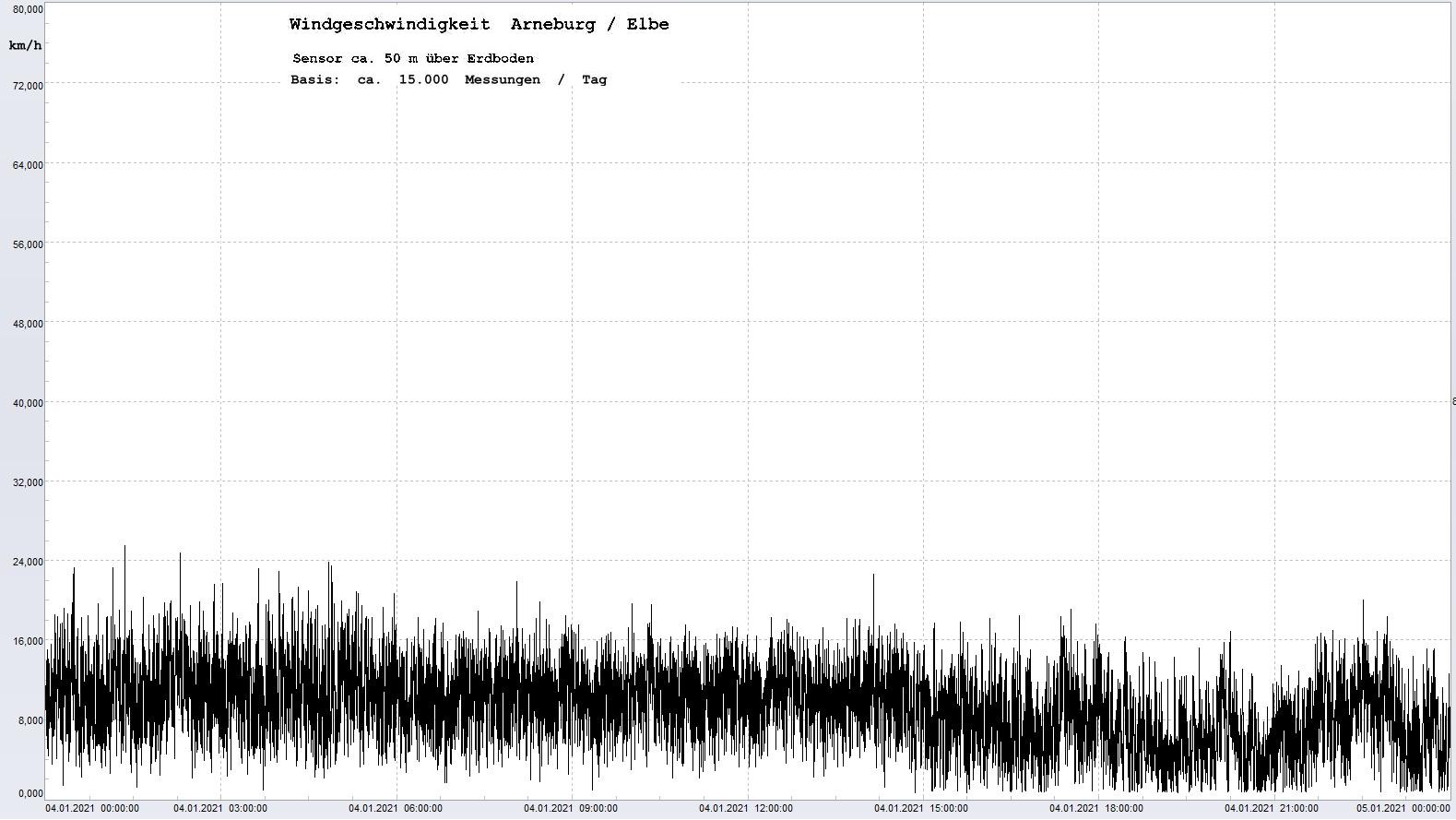Arneburg Tages-Histogramm Winddaten, 04.01.2021