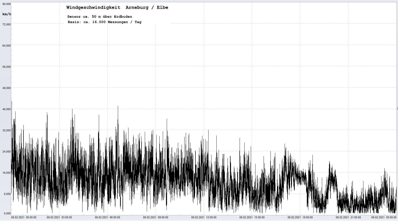 Arneburg Tages-Histogramm Winddaten, 08.02.2021