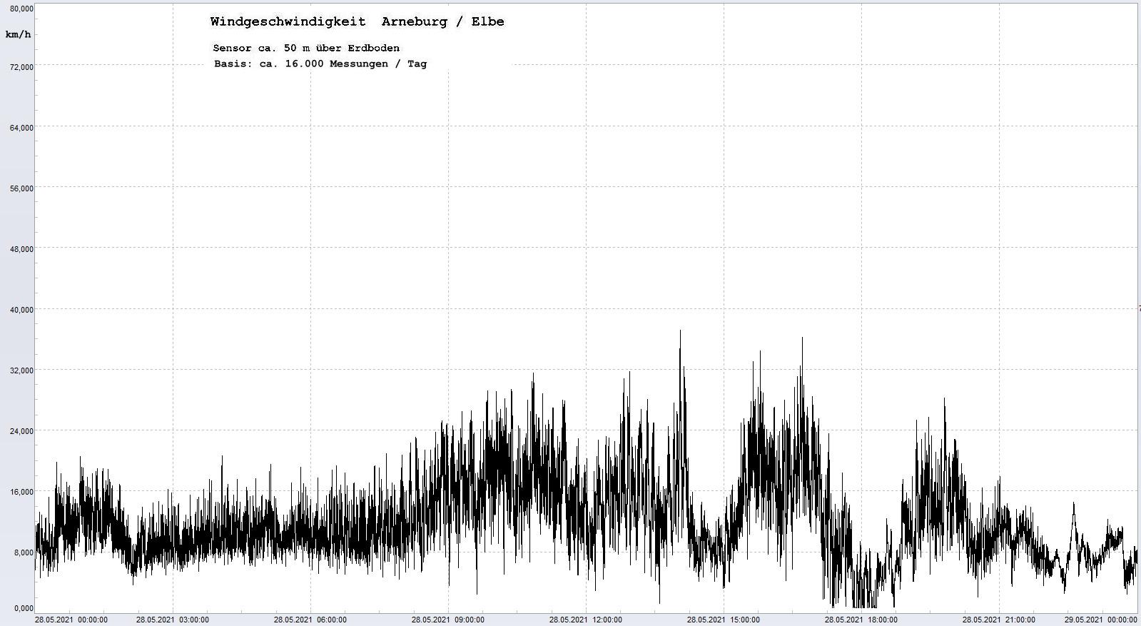 Arneburg Tages-Histogramm Winddaten, 28.05.2021