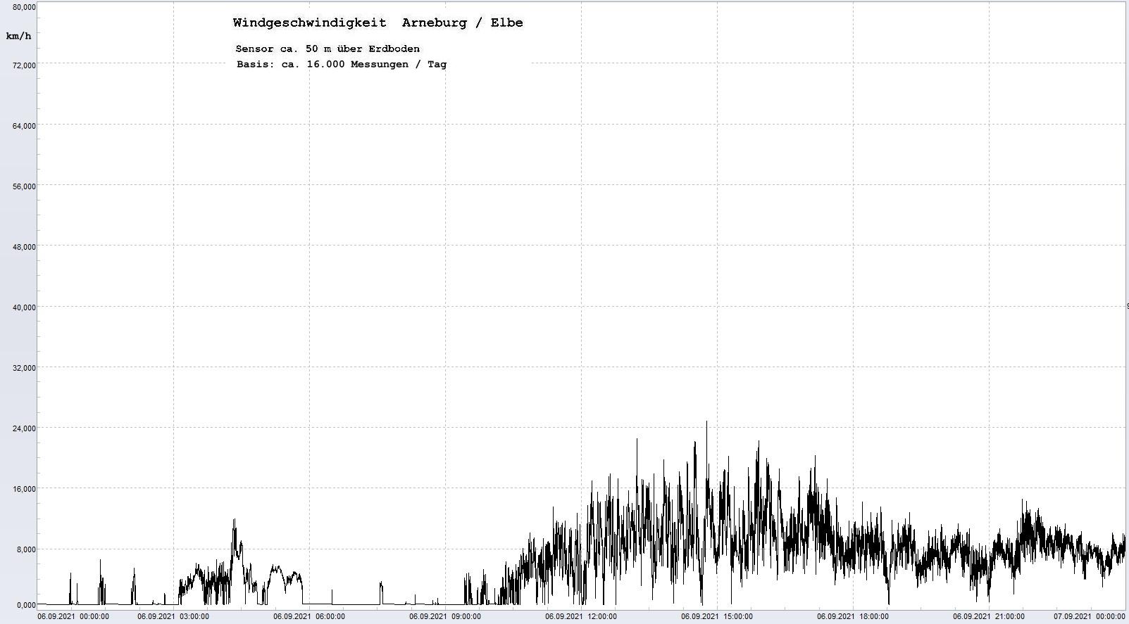 Arneburg Tages-Histogramm Winddaten, 06.09.2021