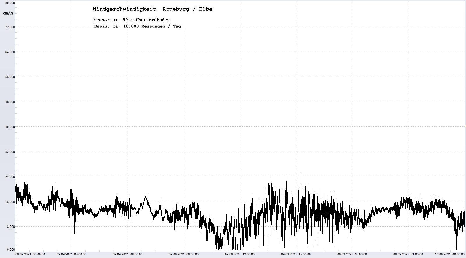 Arneburg Tages-Histogramm Winddaten, 09.09.2021